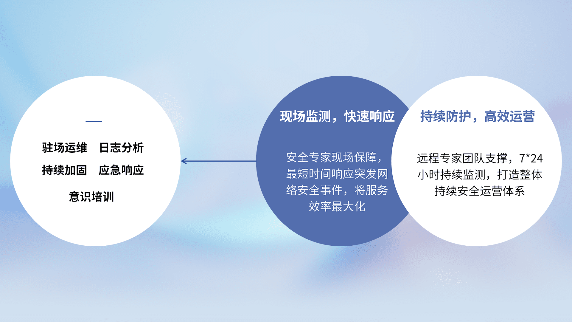 7X24小时持续监测安全事件,保持安全策略有效性,降低资产脆弱性风险,,,精准拦截黑客攻击,,减少被黑客利用的机会,,,,第一时间遏制,,,,降低损失。。。。
