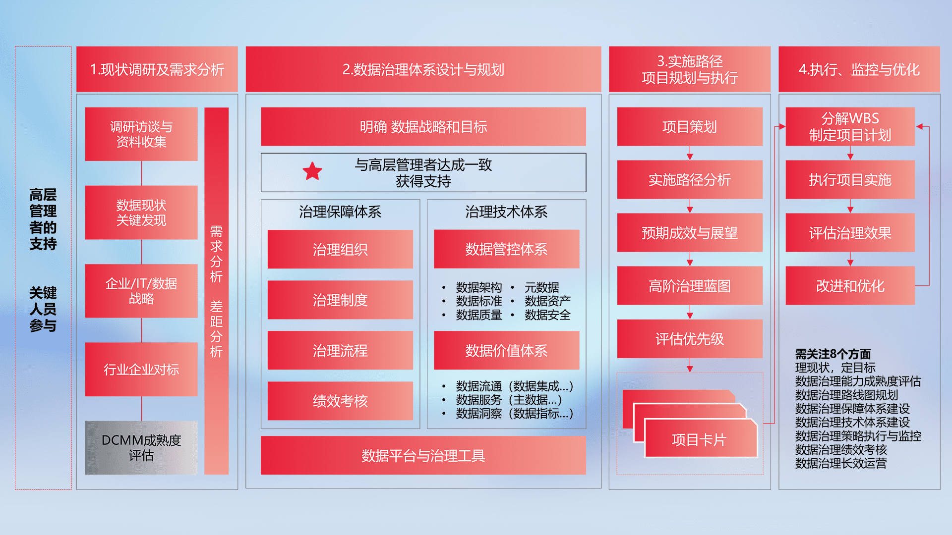 制定并执行统一的数据标准,,,,规范数据定义和格式,,,,消除冗余和不一致性,,实现跨部门和跨系统的数据一致性,,,,为企业提供标准化的数据基础。。。